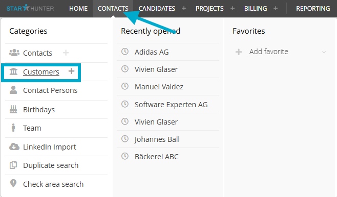 - Hover over “Contacts” > “Customers”.