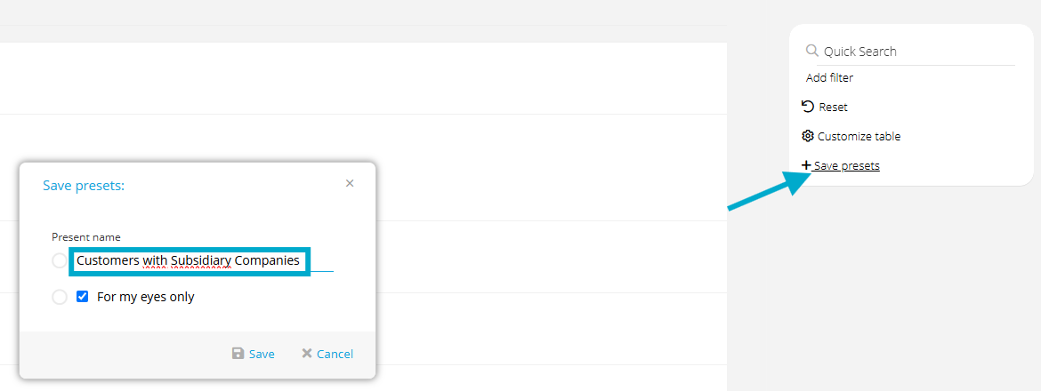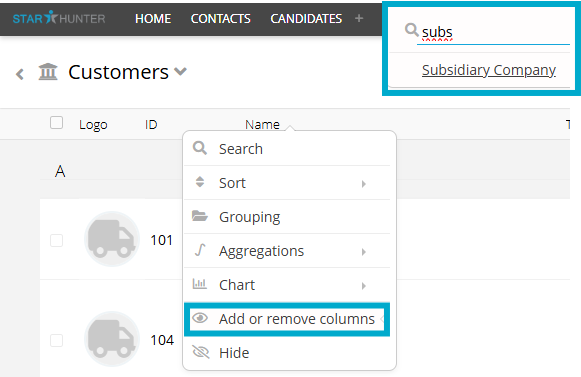In the company and customer overview, you can enable a column to directly display all subsidiaries associated with a company.
