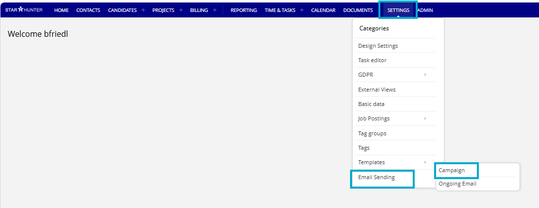 Settings → EMail Sending → Campaigns