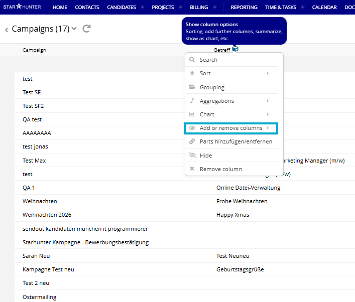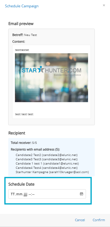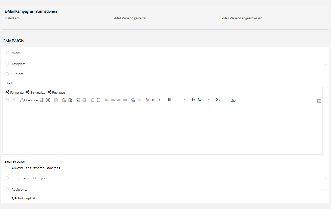 From now on, emails can be sent in bulk to defined recipient lists. Sending is handled asynchronously. This means you create a campaign, set the delivery time - and Starhunter automatically takes care of the sending. An active internet connection at the time of delivery is not required.
