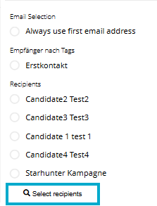 - Additional individual recipients: Add individual recipients in addition to the tag selection. The campaign will then be sent both to all contacts with the selected tag and to all people listed here.
