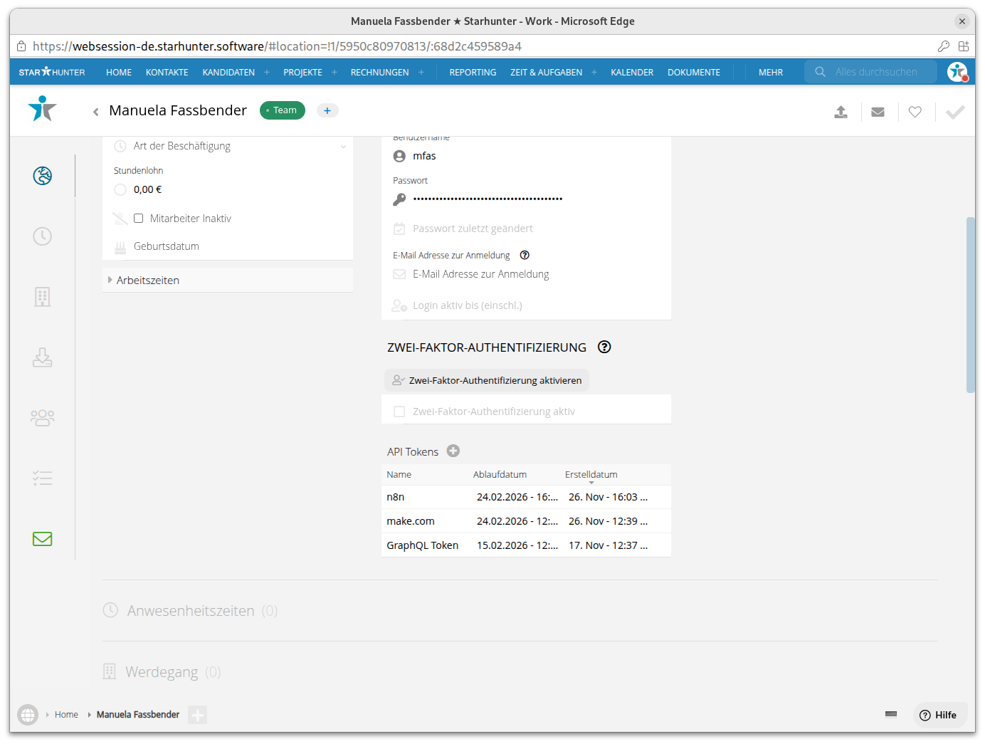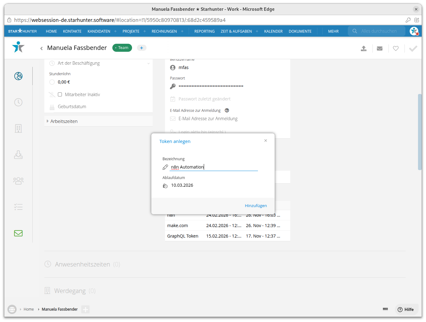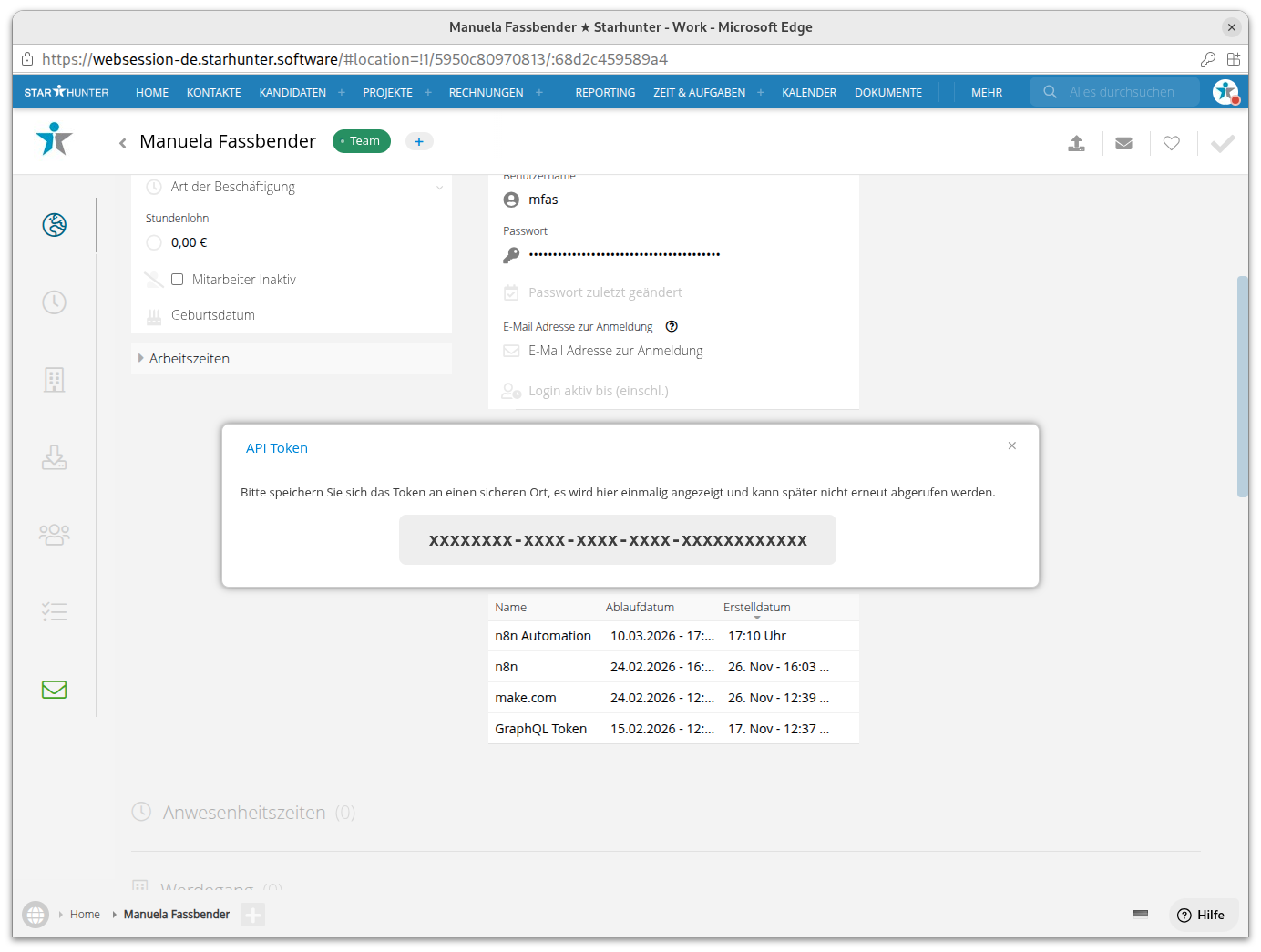 Um n8n mit Starhunter zu verbinden, benötigen Sie einen API-Token. Dieser Token authentifiziert n8n gegenüber Starhunter.
