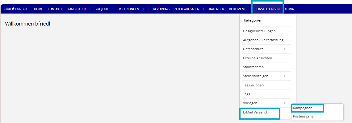 Sie erreichen die Kampagnenverwaltung in Ihrem Starhunter-System über: