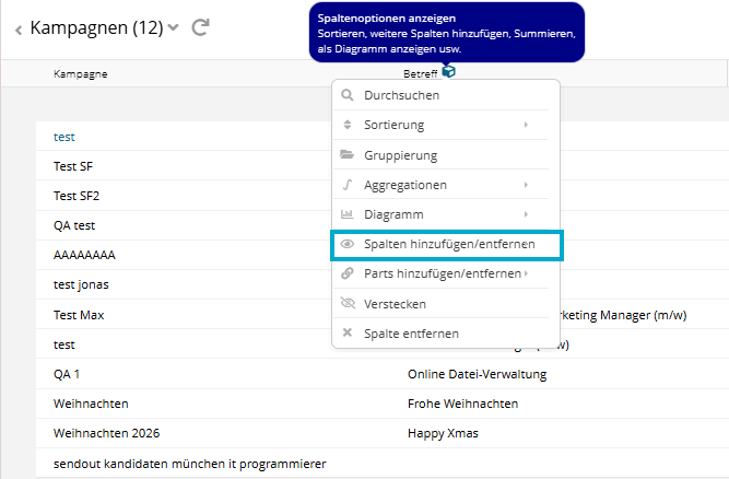 Anzuzeigende Spalten bearbeiten