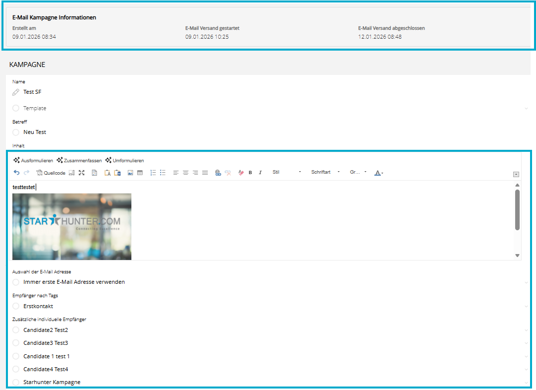 Zudem sind der Inhalt der Kampagne sowie die zugehörigen Empfänger direkt einsehbar.