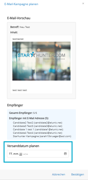 Durch Klicken auf "Bestätigen" starten Sie die Kampagne zum gewünschten Versandzeitpunkt.